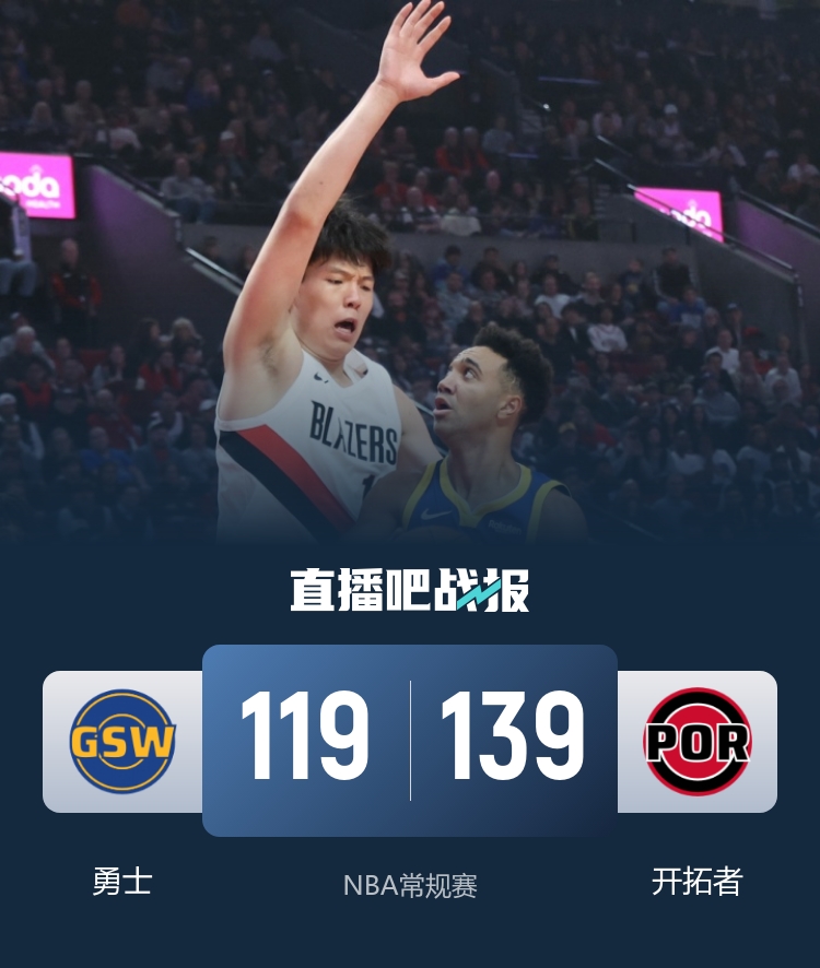 杨瀚森7分钟2分1板2帽 开拓者轻取勇士迎首胜 库里空砍35+6